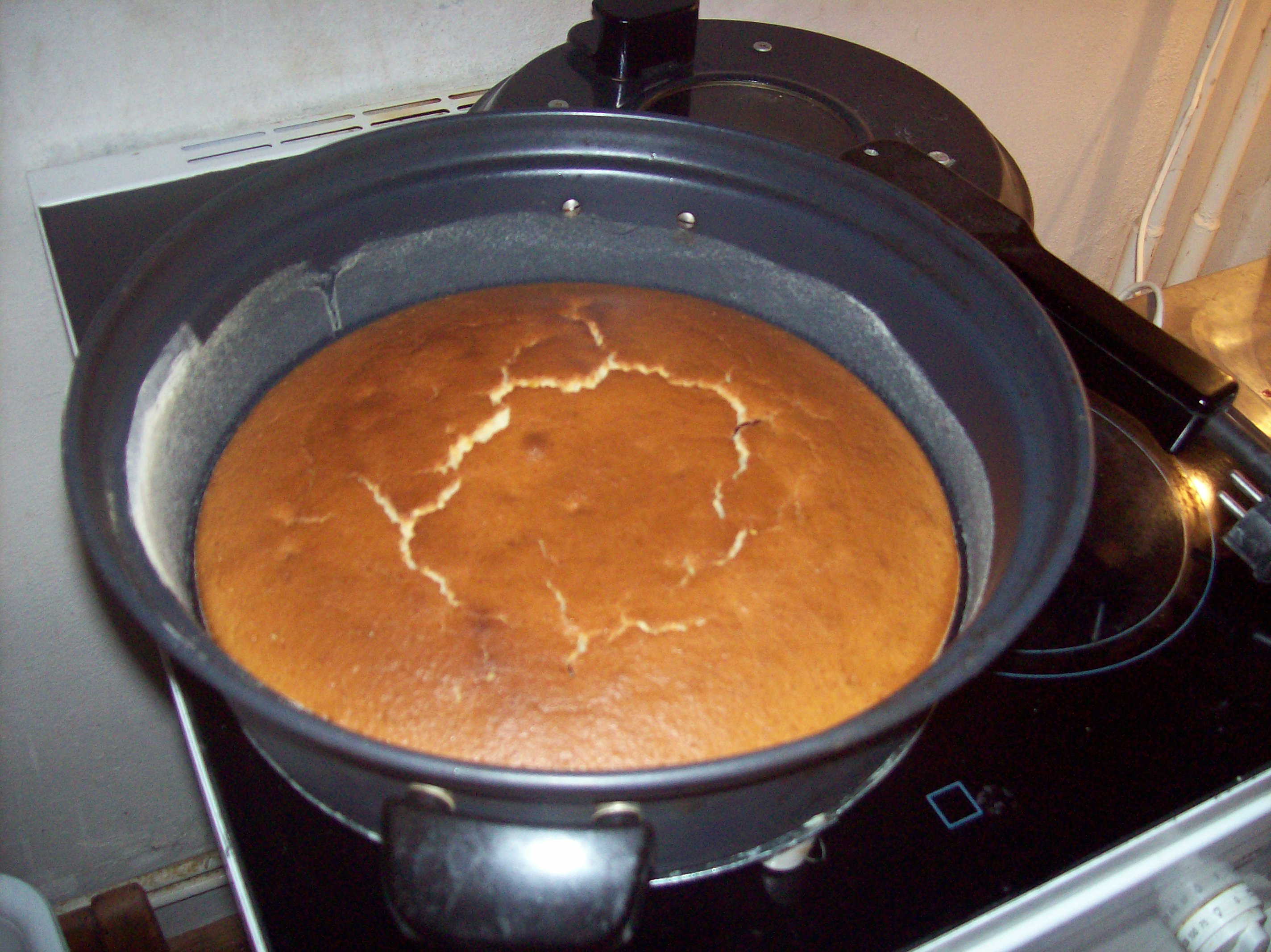 Pomažeme náplní podle chuti a poklademe druhou plackou. Na povrchu pomastíme a vložíme do předem vyhřáté trouby na 200°C. Stáhneme teplotu na 180°C a pečeme 30 minut. Po vychladnutí řezy pocukrujeme.