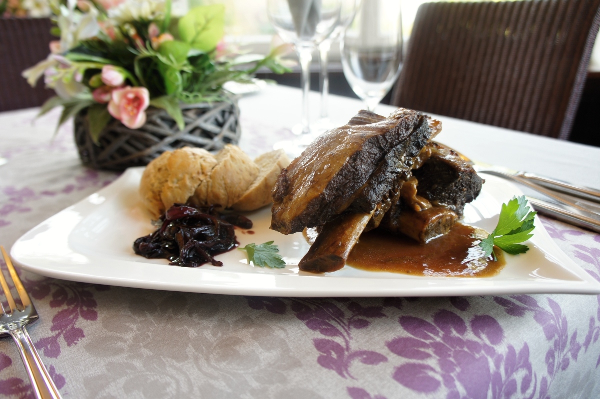 Přidáme rajčatový protlak, lehce orestujeme a zalijeme černým pivem. Provaříme, přidáme vývar a veškeré koření a dáme do trouby na 130° C na 4-5 hodin.