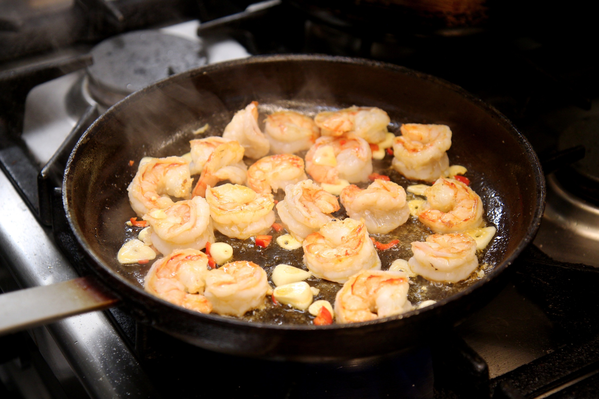 - Krevety osolíme a opepříme, lehce restujeme, asi jednu minutu.