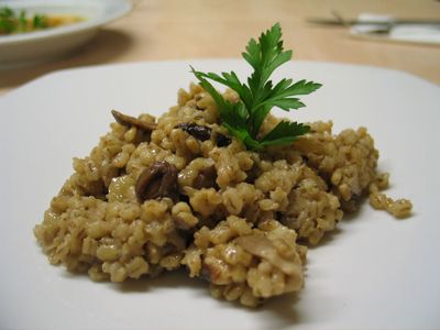 Krupky uvaříme den předem. Studené a měkké krupky dáme na pekáč, osolíme, opepříme, přidáme máslo (1 kostka másla na 1/2 kg krupek).