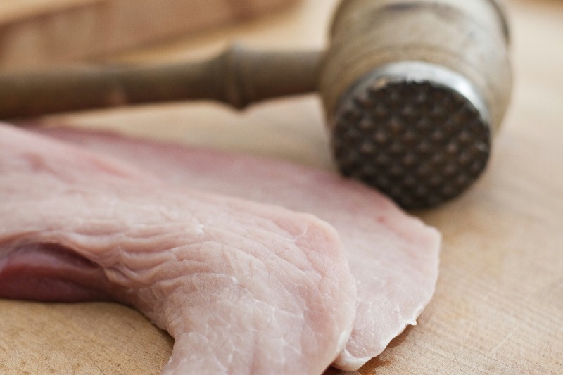 Vepřové řízky naklepeme na tenko, osolíme, opepříme. Očištěné žampióny nakrájíme na plátky a část odložíme stranou. Na pánvi na másle zpěníme pokrájenou cibulku, přidáme část žampiónů a podusíme. Podle chuti osolíme a opepříme, vmícháme 1/2 nakrájené papriky a nasekanou petrželku. Směs rozdělíme na připravené plátky masa, svážeme potravinářským provázkem do uzlíku a obalíme v hladké mouce. Na rozehřátém oleji maso opečeme, podlijeme a zvolna dusíme doměkka. Ke konci přidáme druhou část nakrájených žampiónů, druhou 1/2 nakrájené papriky a jíšku , promícháme a krátce povaříme, dochutíme solí a pepřem.