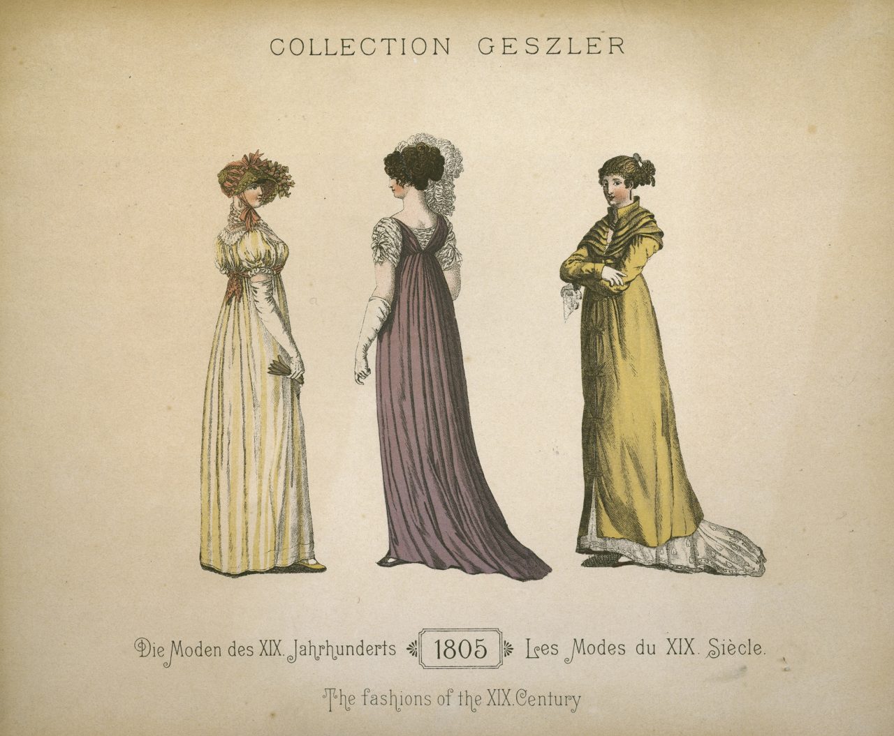 Dámská móda v období empíru (období cca 1805 – 1815) byla ovlivněná antikou. Od 90. let 18. století byly výraznou částí dámského oděvu tzv. chemise, dlouhé v pase nepřestřižené šaty s krátkými rukávy a dekoltem. Pasová linie byla přesunutá těsně pod prsa a dolů po těle šat volně splýval. Z módy se v této době vyřadily korzety (vrátily se zpět až po roce 1810), vycpávky a velké množství spodniček. Nepoužíval se již tolik hedvábí a samet, ale lehčí látky jako mušelín a popelín. Počátkem 19. století se dámské oblečení stalo zdobnější díky krajkám a volánům při dolním okraji šatů. Šaty se zkracovaly a odkrývaly se kotníky. Výstřihy se zmenšily a vznikl stojatý límeček. Svrchní šaty zastupovaly rozměrné kašmírové šály a krátké kabátky sahající k hranici přirozeného pasu.