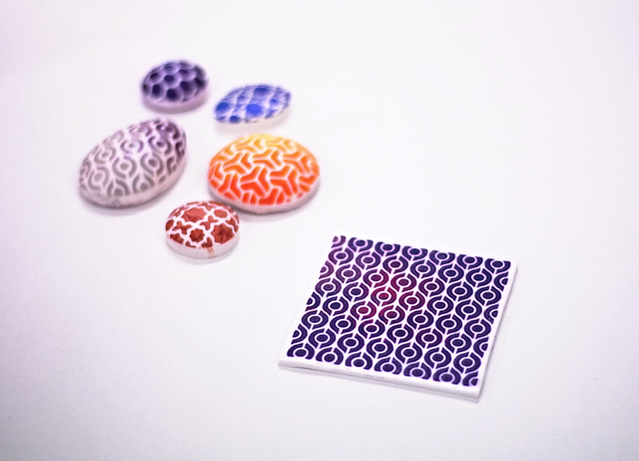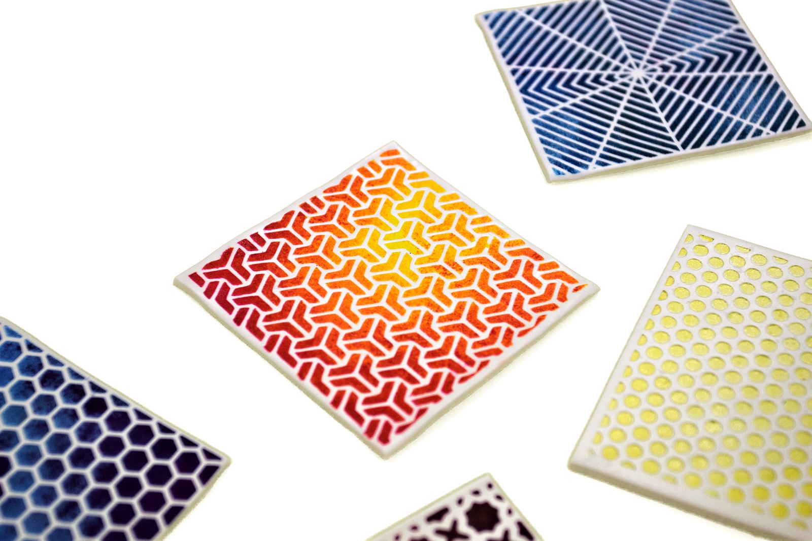 7. Následně můžeme z plátu pomocí vykrajovátek vykrojit tvary, ze kterých vytvoříme šperky, magnety na lednici, obkladačky (ty by bylo třeba překrýt průhlednou dvousložkovou pryskyřicí, která vytvoří ochrannou vrstvu) a další výrobky. Fantazii se meze nekladou (foto).