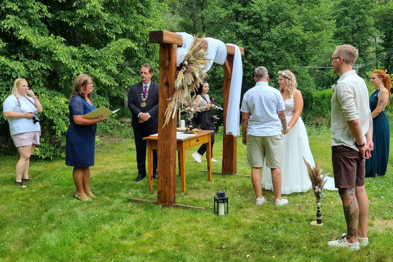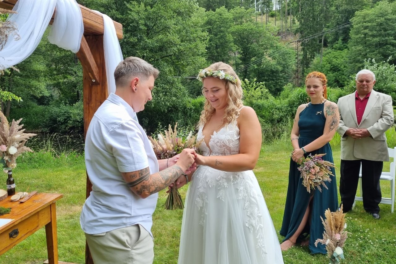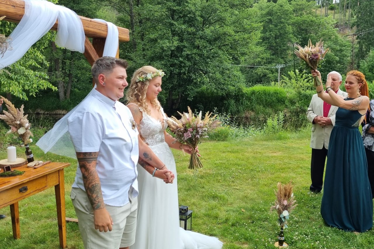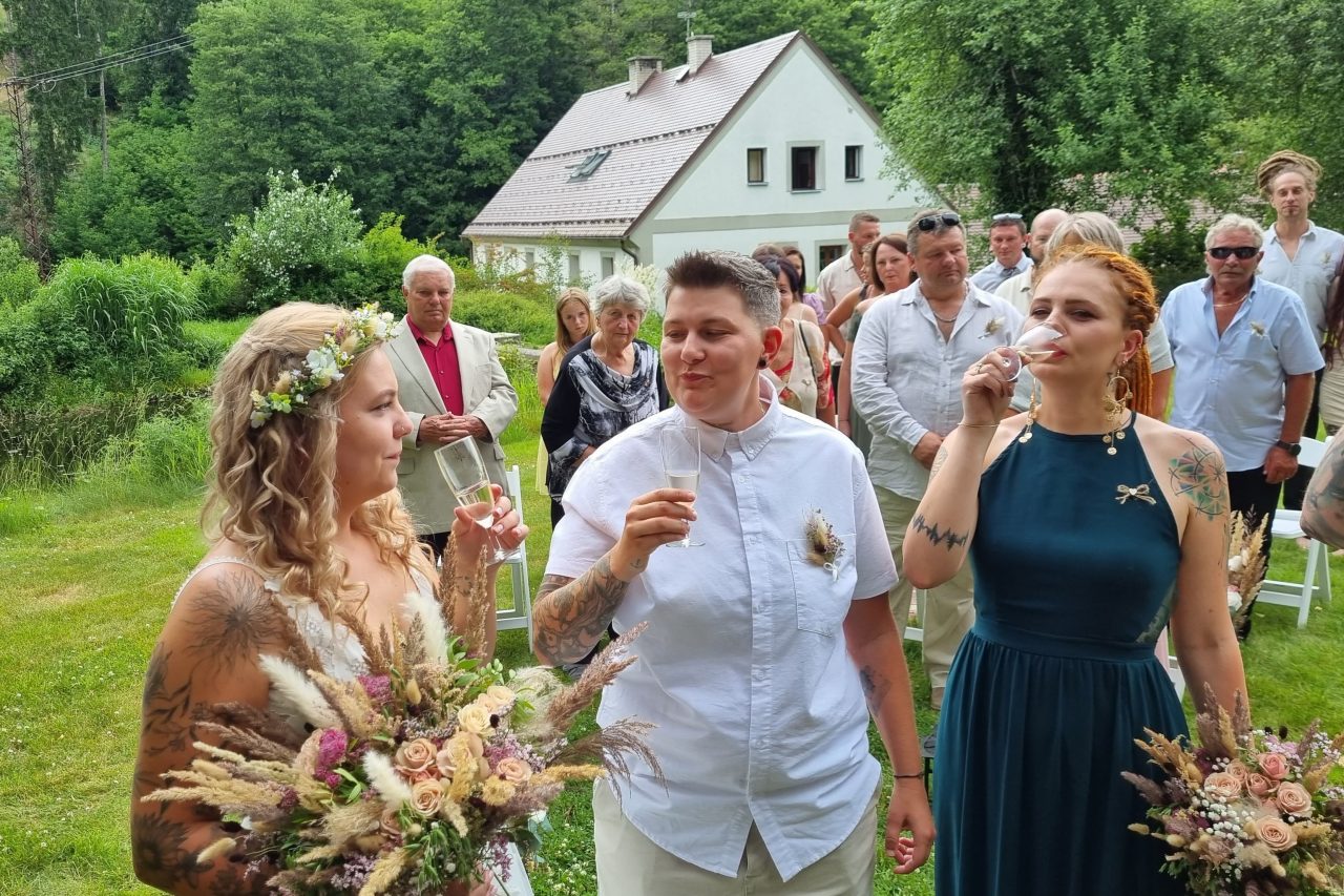 34letá Mája a o deset let mladší Natálie partnerství uzavřely na konci června v Peckově mlýně na severním Plzeňsku. Obřadu přihlíželi příbuzní a známí. "Je to kvůli pravé lásce, cítily jsme to hned od začátku," řekly Mája a Natálie. Vzaly se po roční známosti.