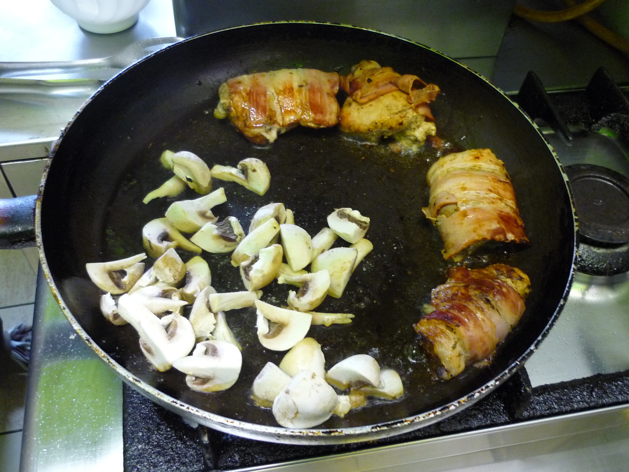 Maso nakrájíme na plátky, naklepeme, okraje nařízneme, osolíme, opepříme a z obou stran opečeme na oleji. Upečené řízky přendáme do vymazaného pekáče. Ve výpeku podusíme doměkka nakrájenou cibuli a pokrájené žampiony. Na každý plátek masa dáme plátek šunky, přidáme podušené žampiony a nastrouhaný sýr. Vše zalijeme smetanou a zapečeme v troubě při 180° C po dobu 15 – 20 minut.