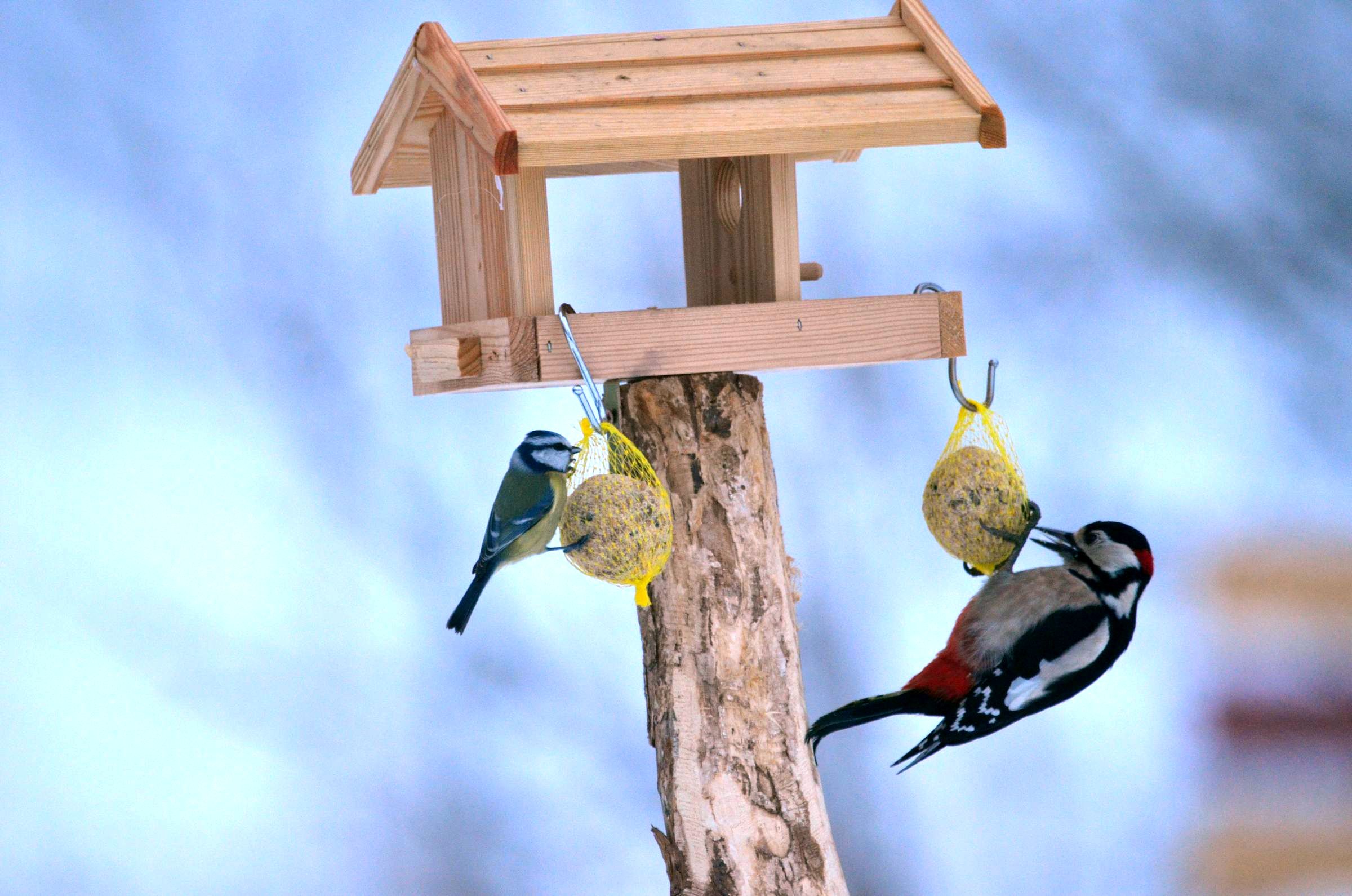 Potrava musí být vždy chráněna před sněhem a deštěm. Krmení pravidelně doplňujeme a krmítko čistíme od trusu a slupek. Do krmítka sypeme slunečnici, oves, proso, pšenici a další obiloviny či luštěniny. Kosy a drozdy potěší pár jablek či jeřabin, strakapoudy, brhlíky a sýkory tuková směs.