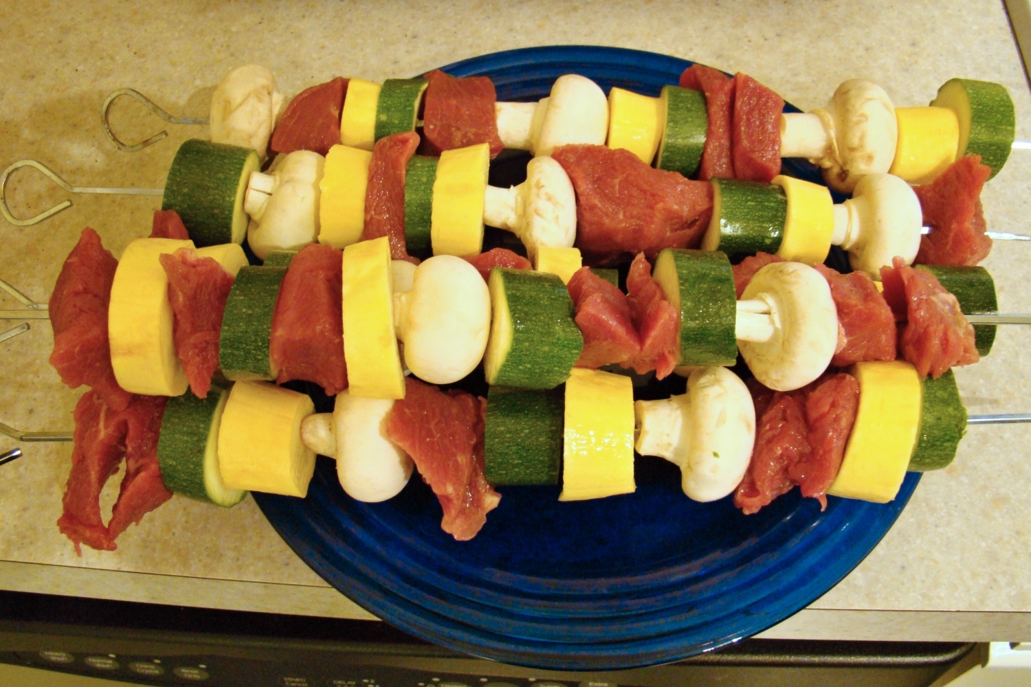 Zeleninu nakrájíme na kousky a střídavě napichujeme na špejli. Hrašek rozmícháme s vodou nebo mlékem na těstíčko. Špejli se zeleninou obalíme v těstíčku a osmažíme na rozpáleném oleji. Necháme okapat na papírovém ubrousku.