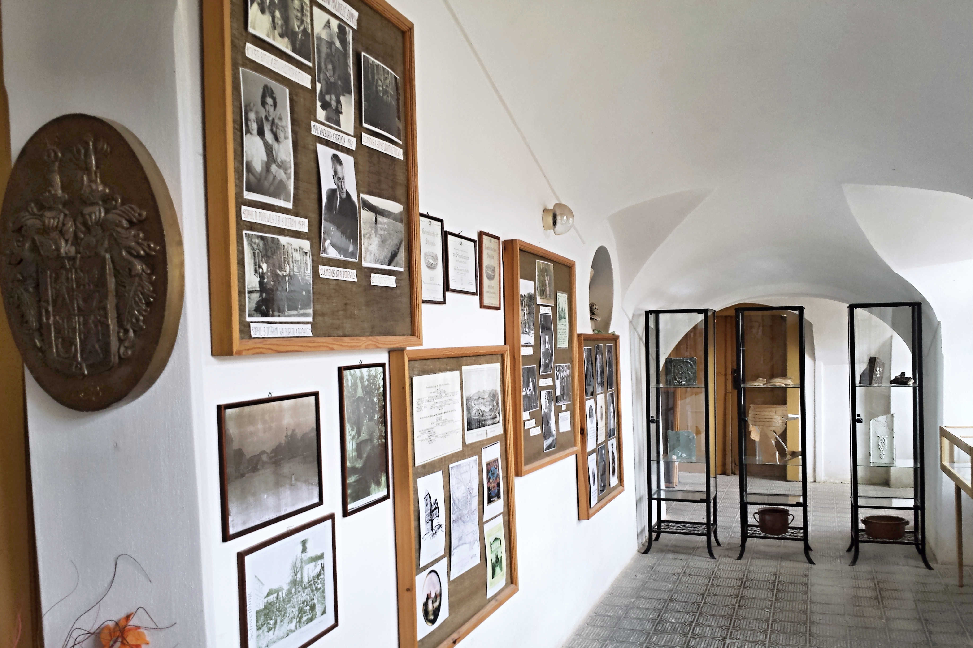 V přízemí je k návštěvníkům k dispozici levná turistická ubytovna. „Není to žádný zámecký hotel,“ upozorňuje starosta Karel Petráň. Kolem ubytovny pak stoupáme do prvního (a posledního) patra zámku. Zde obec využívá opravené prostory ke krátkodobým výstavám. V současnosti je tu k vidění výstava ornátů