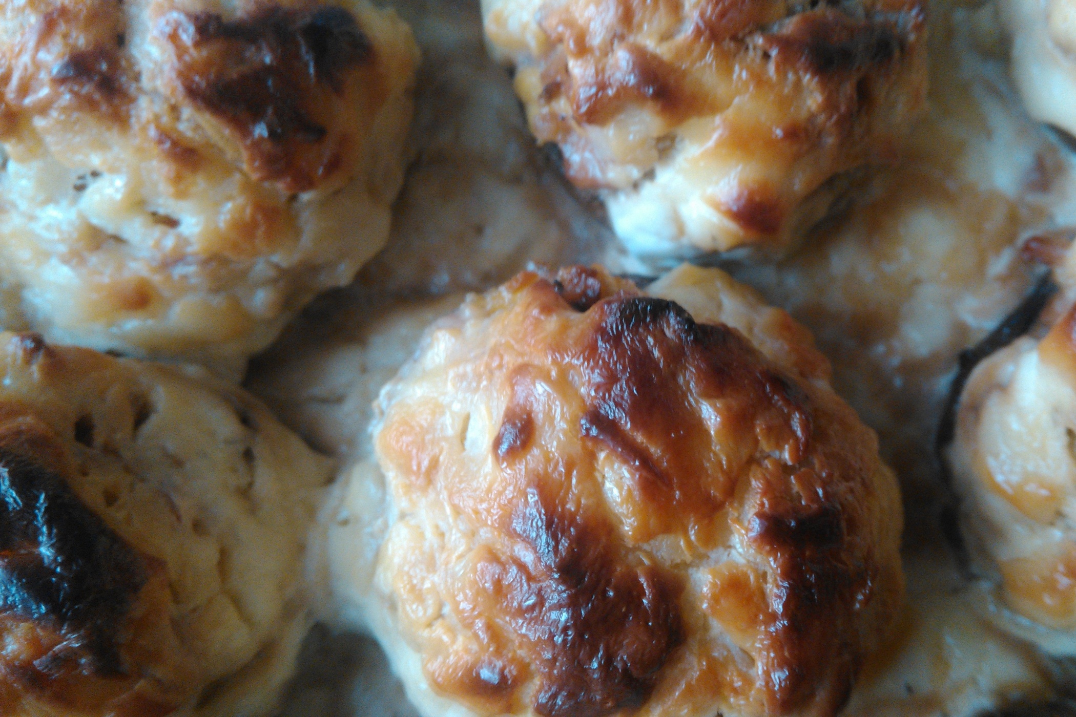 Na dno vymaštěné zapékací misky nebo pekáče naskládáme naplněné žampióny a přelijeme je smetanou, rozmíchanou s nastrouhaným tvrdým sýrem a utřeným česnekem. Ve vyhřáté troubě zapékáme při 170°C cca 20 minut.