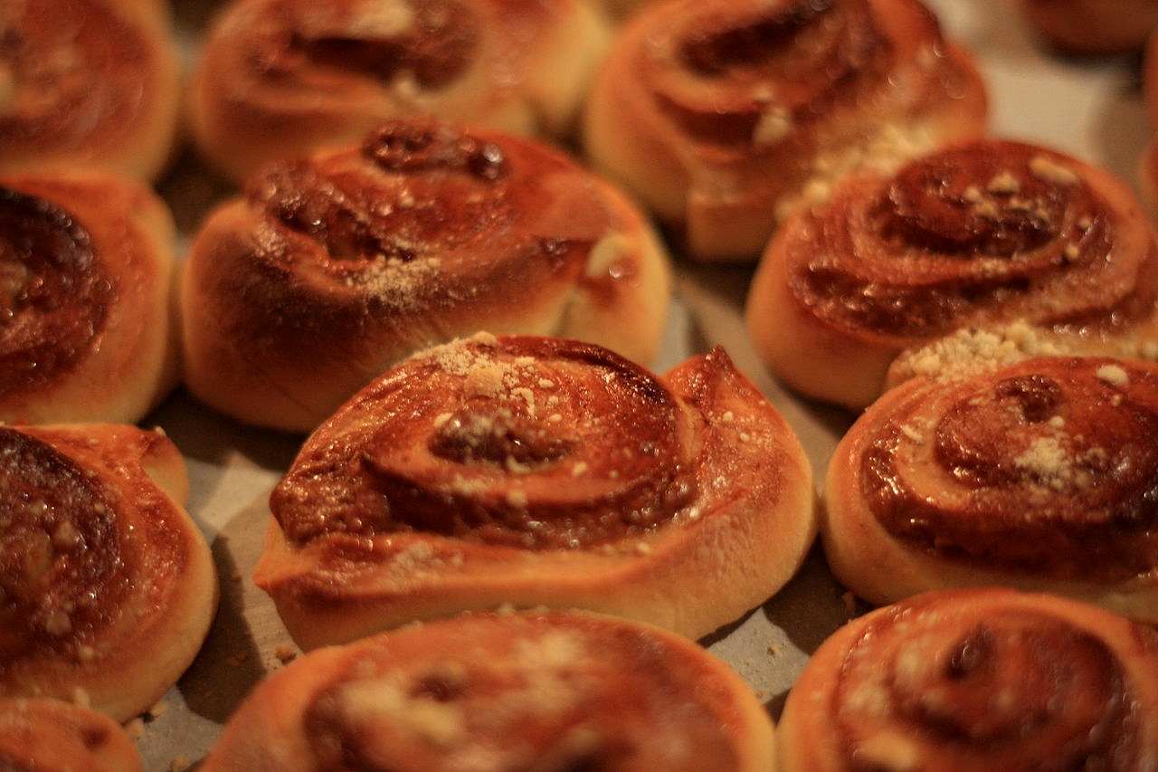 Poté rolády vybalíme, potřeme rozšlehaným vejcem a nakrájíme ostrým nožem na kolečka o tloušťce asi 1–2 cm.