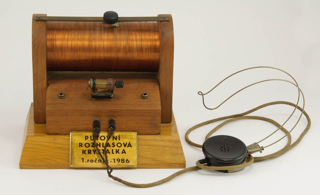 Krystalka na obrázku je výrobek žáků 1. ročníku elektrotechnické průmyslové školy.Jde o exponát umístěný v Rozhlasovém muzeu, jež je součástí rozhlasové budovy regionálního studia ČRo v Plzni.